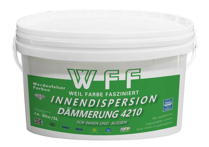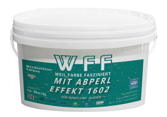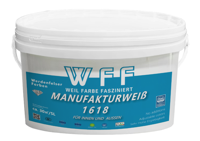 WFF / 卓越环保品质: 德国韦登费尔斯涂料公司十分注重产品品质,在产品的研发与制造上不断的严格要求自己做到“细节决定品质”。韦登费尔斯涂料公司的高质量标准和全面的质量保证措施是韦登费尔斯涂料公司客户的信任和满意的保证。对公司来说,质量不仅仅是测试产品,同时,还要不断分析生产过程。只有通过使用一流的原材料以及与知名供应商和机构的有针对性的合作,韦登费尔斯涂料公司才能确保高质量要求。